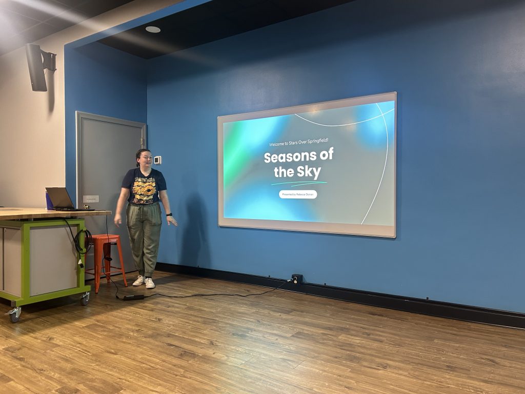 February 6th, 2026- Stars Over Springfield: The evening began as guests divided into two groups, with Jack Megas presenting a planetarium show while Rebecca Doiron shared Seasons of the Sky, explaining why seasons on Earth occur. Although clouds prevented outdoor observing, guests gathered in Astronomy Hall for hands-on activities led by STARS Club volunteers, keeping the night engaging and interactive for everyone.
